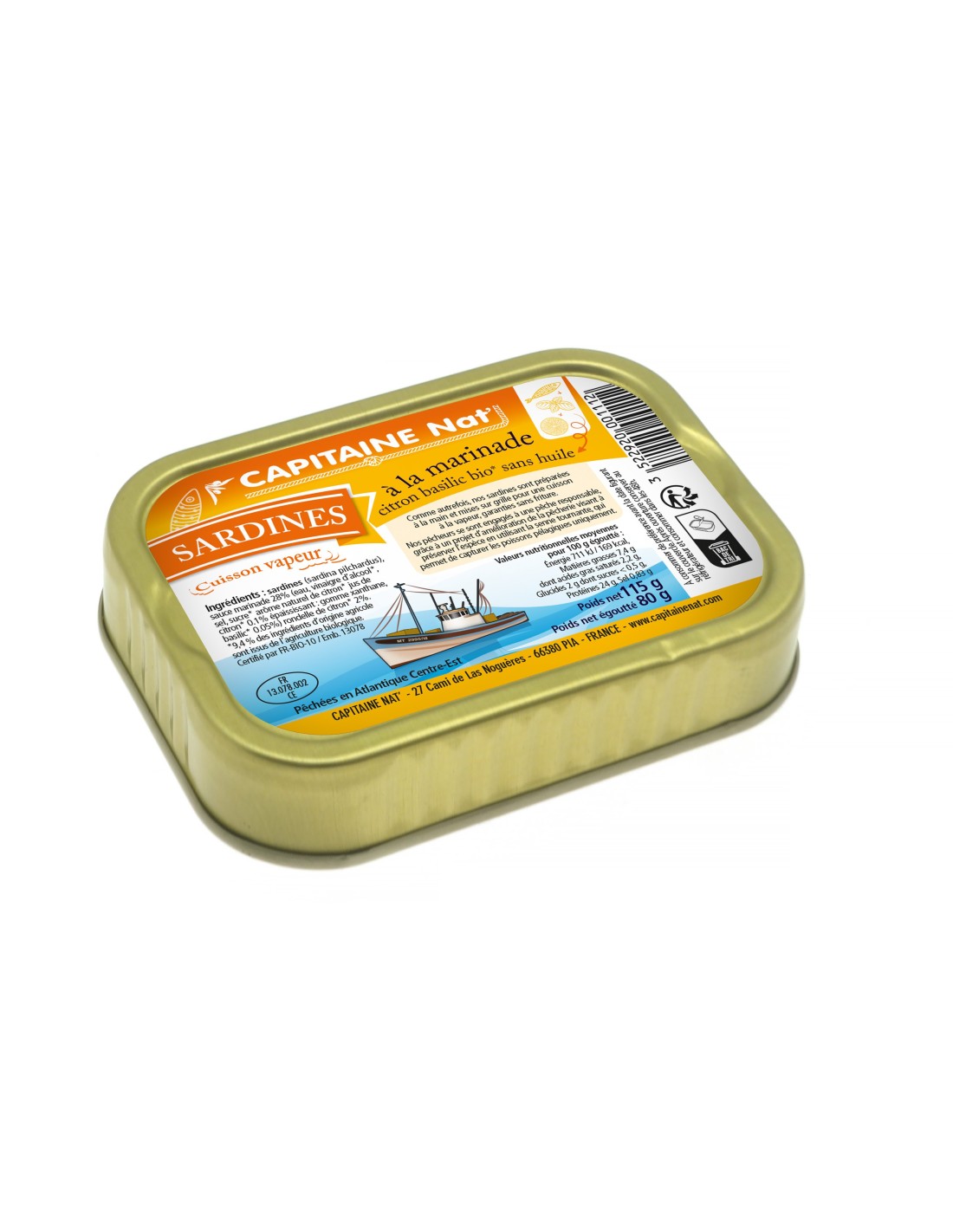 Sardines à la marinade citron basilic bio* sans huile - 1/6