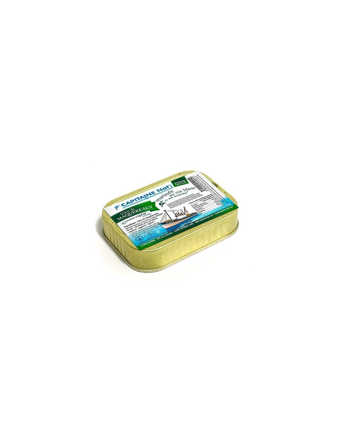 - filets de maquereaux, eau, vinaigre de vin blanc, vin blanc 2%, sel marin, aromates et épices 1%* (carottes*, oignons*, clou de girofle*)